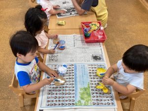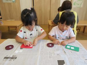 🌈昨日、今日と親子遠足に向けて「おべんとうバス」の製作をしました