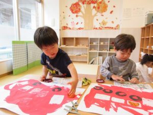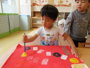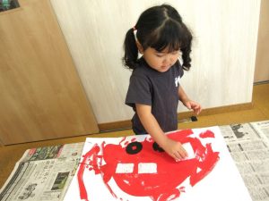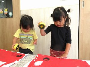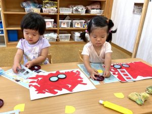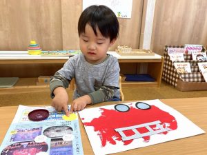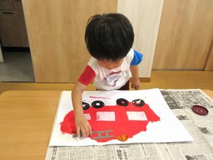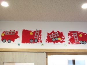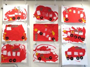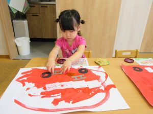 お話をしながら楽しんで貼っていきます「消防車行ったね~♪」