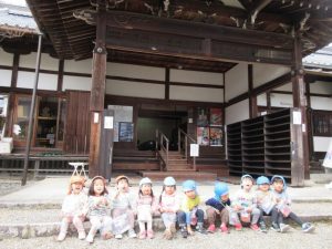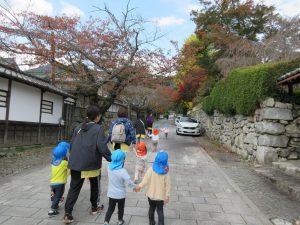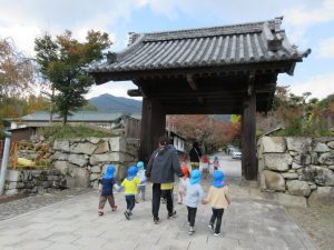 いつもとは違うコースにワクワク、張り切って歩く子ども達です♪「大きな門だね😲」