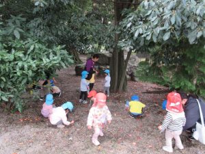 「赤い葉っぱがいっぱい🍂」「きれいだね✨」