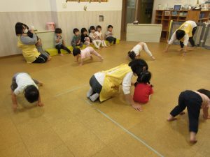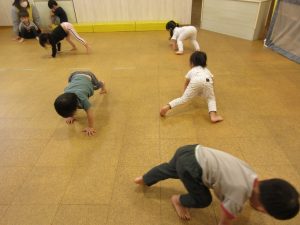 〇うま 高這いをします。膝を伸ばして前へ進みます。