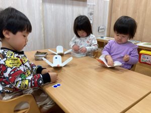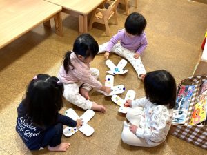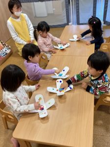 🌈りんご組さんは牛乳パックのコマを作って遊びました