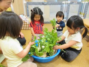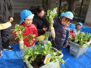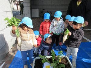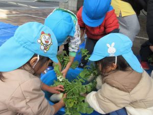 🌈ぶどう組さんがお世話をしていた大根が大きくなったので収穫をしました