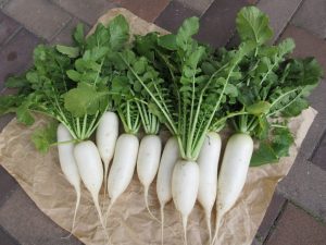 ミニサイズですがまん丸に太ったきれいな大根が穫れました