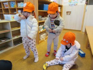 おまけ…散歩の準備が自分で出来るようになってきたりんご組さん。靴下を自分で履いたり、ジャンパーのチャックも自分で上げられるようになってきました👍