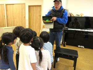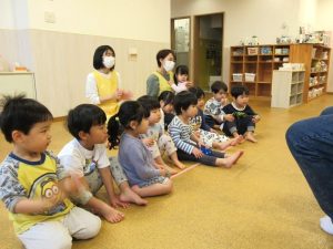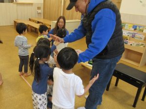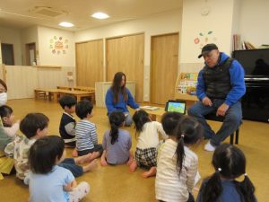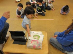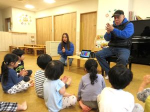 映像や歌に合わせていろいろな英語を教えてもらいました。一緒に歌ったりボブ先生の真似っこをして声に出して言ってみたり、と楽しみながら参加する子ども達です😊