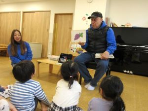 カードを使って果物や野菜の英語を教えてもらいました