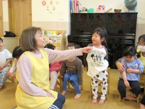 前に出て名前を言ったり歌を披露してくれるぶどう組さんです