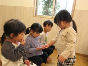 りんご組さんからぶどう組さんにコースターのプレゼントです🎁