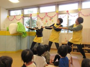 〇先生が「大きなカブ」の劇をしてくれました