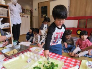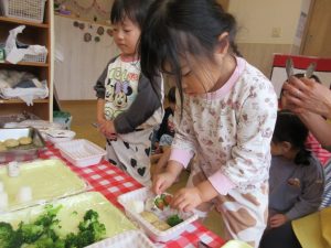 「ブロッコリーはここに入れよう」