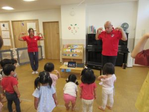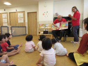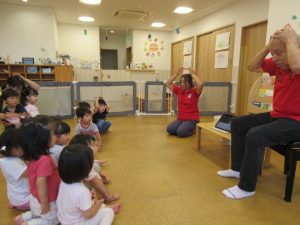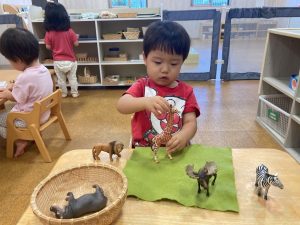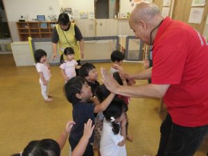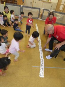 「きりんさんだね~首が長いね~」お話をしながら楽しんでいます