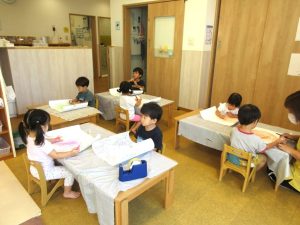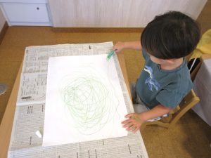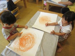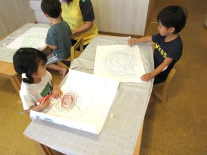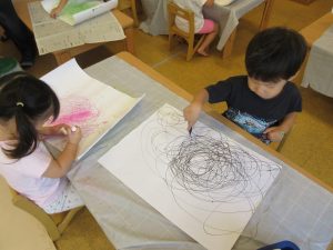 好きな色のサインペンを選んで大きな紙にダイナミックに描くことを楽しみました