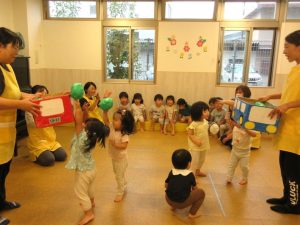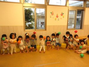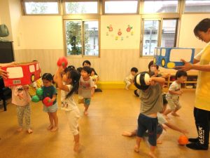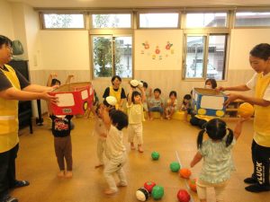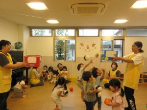 ぶどう組さんは箱めがけて投げられるお友だちもいます