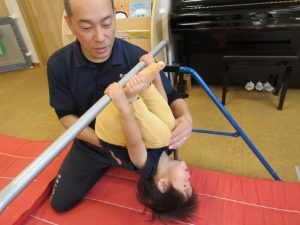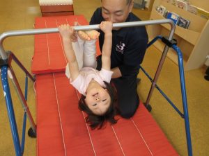 〇ぶどう組さんは鉄棒をしっかりと握って足抜き回りをしたり、