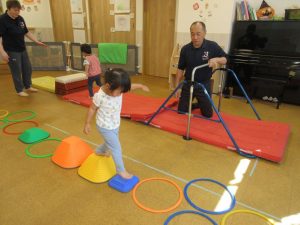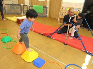 〇りんご組さんは前半、運動器具に挑戦しました