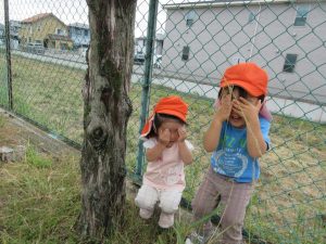 顔を両手で隠して、隠れているつもり⁉のかくれんぼ。可愛いですね😊