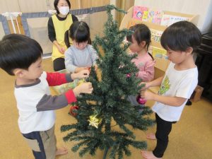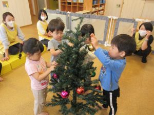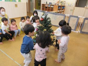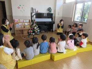 ライトをつけてみんなで「赤鼻のトナカイ♪」を歌いました