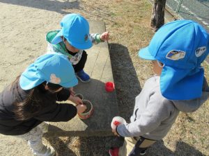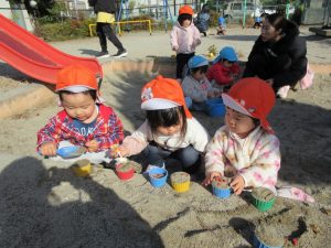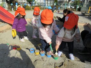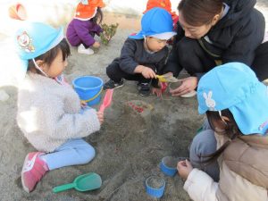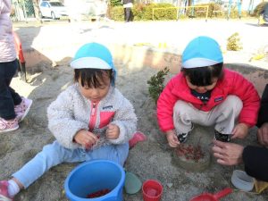 砂場では南天の実を使ったごちそう作りが盛り上がりました