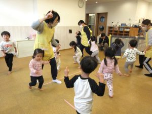 ピアノの音に合わせてオニに変身する子ども達👹