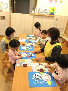 🌈りんご組さんは雪だるま製作の続きをしました⛄