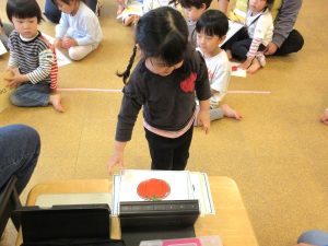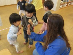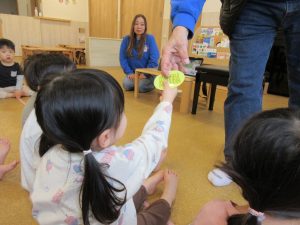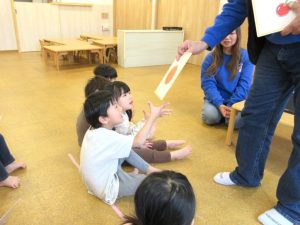果物の名前を覚えて発音したりカードを持って行ったりと、カード遊びに慣れてきた子ども達です😊
